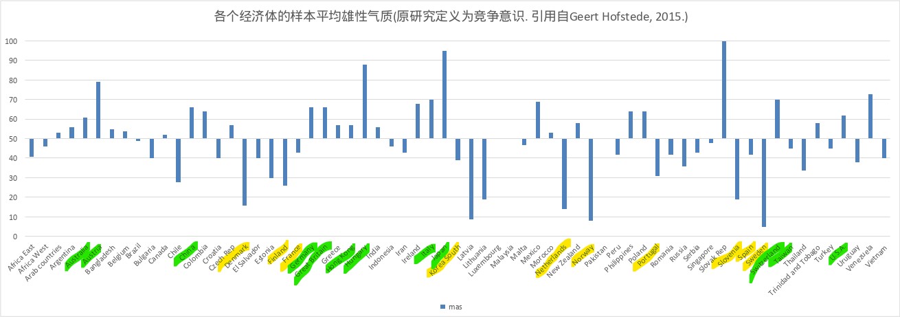 | 当前 | 2026年4月14日 (二) 14:04 | 1,310 × 461(97 KB) | %login%(讨论 | 贡献) | 多个国家的“雄性气质”文化维度。这里的高“雄性气质”指竞争意识超过合作意识,低“雄性气质”指合作意识超过竞争意识。数据链接:geerthofstede.com/research-and-vsm/dimension-data-matrix |